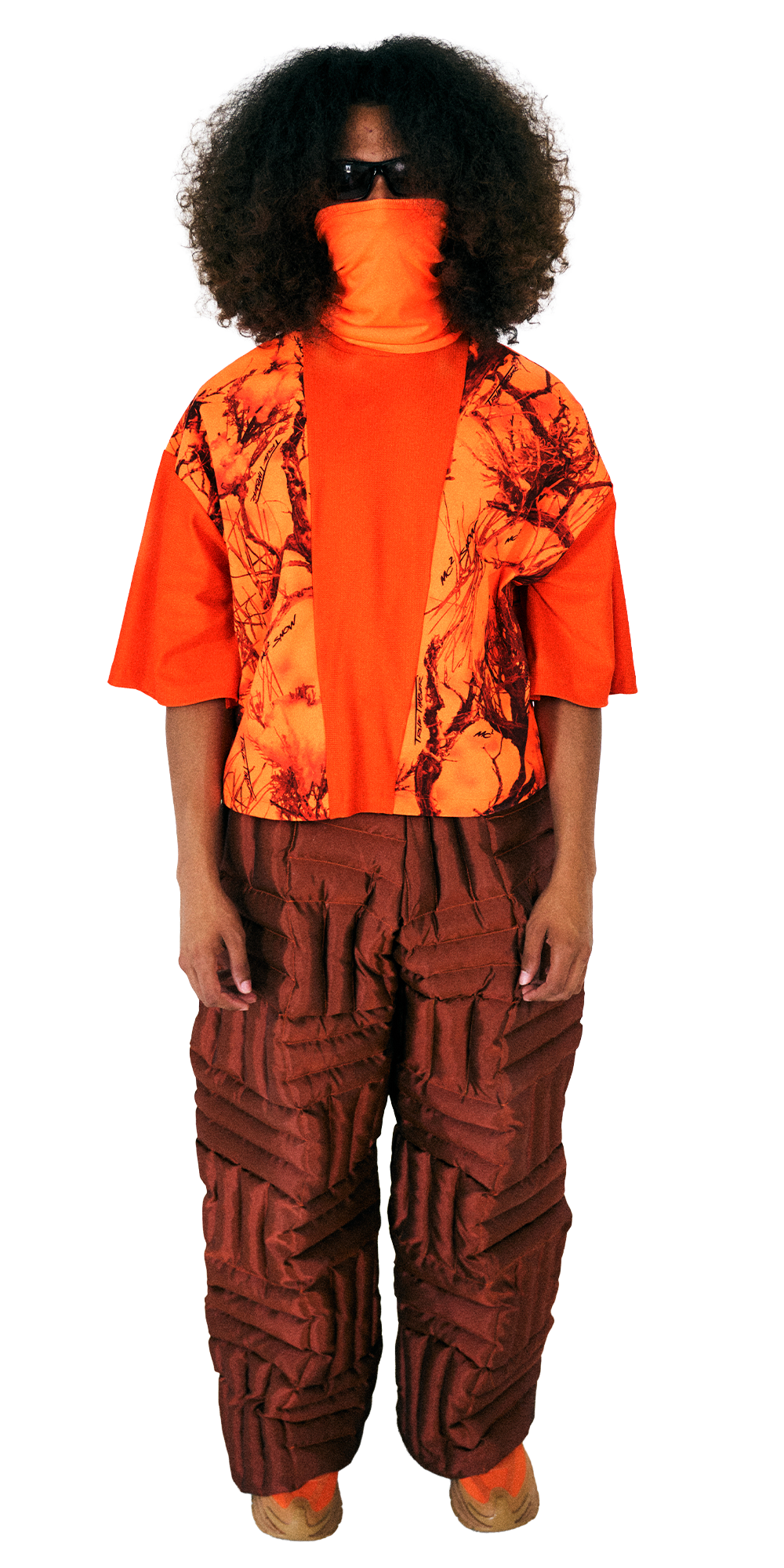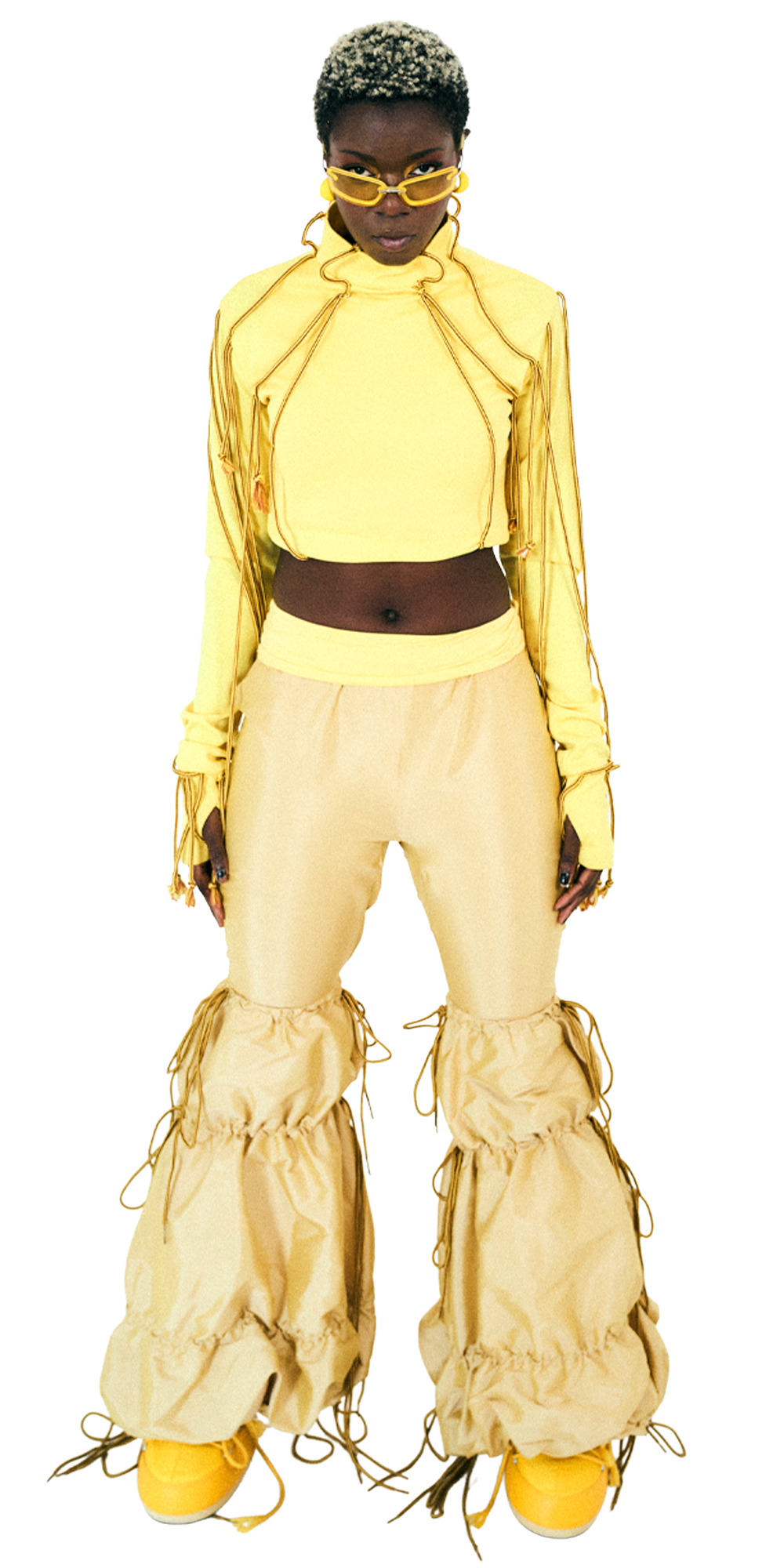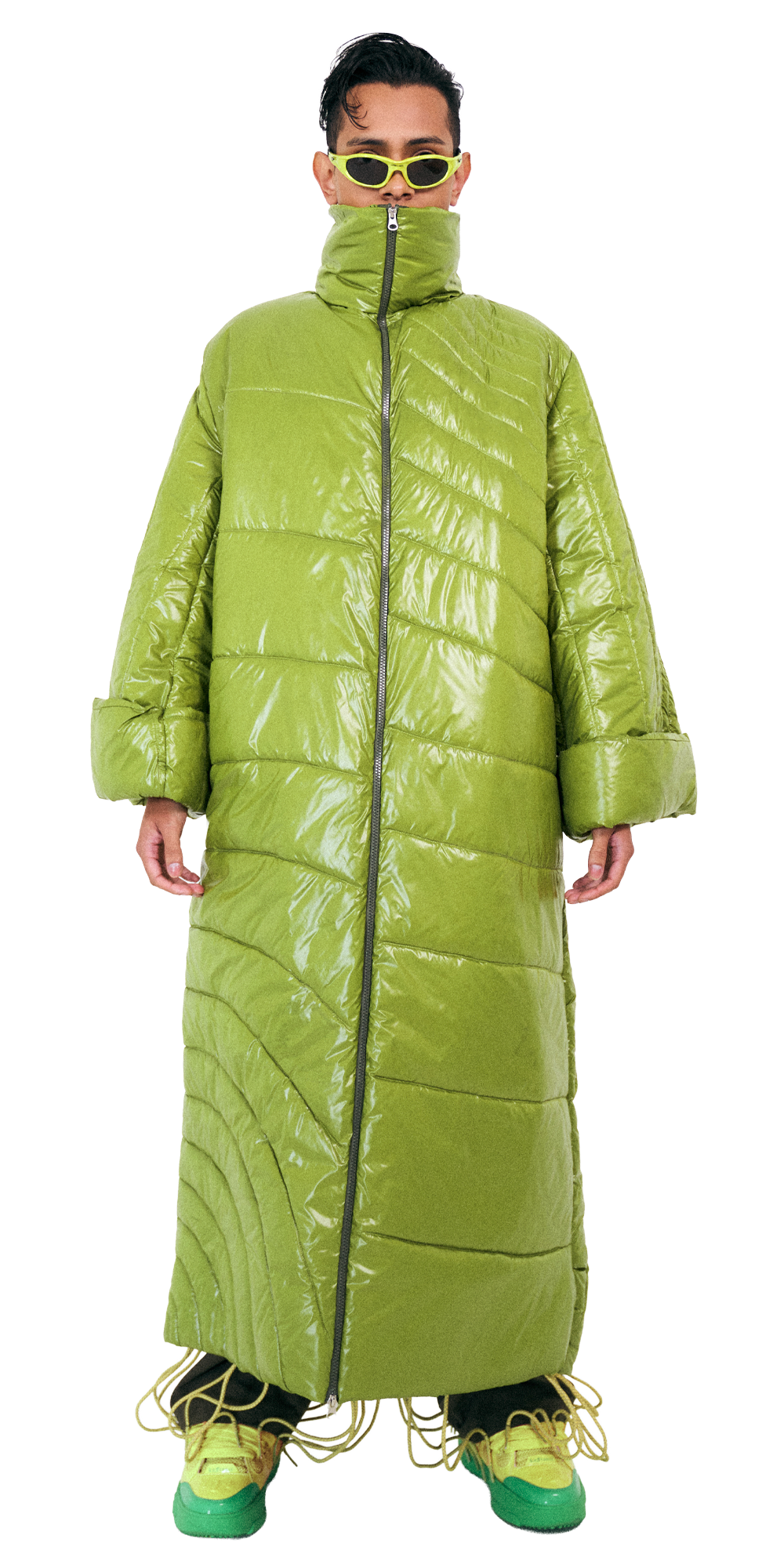 No. 1 is a senior collection and the debut as an independent designer. Inspired by her ongoing interest in streetwear, the integration of winter elements draws from her childhood in Michigan, where snow and cold weather later became a source of nostalgia after moving to Southern California. The collection blends standard techniques with uniquely specialized skills developed through independent studies. The snowwear characteristics of the collection were executed through multiple fabric manipulation methods such as cording, quilting, and stuffing. Every look is presented in a single monochromatic hue, echoing the title No. 1; a nod to both the collection’s visual unity and its role as a debut collection.